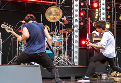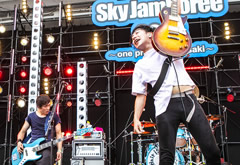 My Hair is Bad日本武道館 2Daysを含め、全国各地でホームランを打ち続けているMy Hair is Bad。長崎でも1年ぶりの特大アーチを放つべく、満を持してSky Jamboreeに初出演!前日の四国ライブや移動の疲れも感じさせず、朝イチから快調にサウンドチェックを行った3人。本番直前はステージ袖でホリエアツシ、日向秀和(ストレイテナー)と談笑するなど和やかなムード。 そして迎えた午前11時。 「Sky Jamboree おはよー!!20周年!1発目!新潟県上越、My Hair is Bad始めます!ドキドキしようぜー!」と挨拶をして、【アフターアワー】からライブスタート! バンドの熱量の呼応して、ステージ前のライブエリアに密集する大勢のファンも全力でOi Oi コール! 立て続けに演奏された【熱狂を終え】では(G/Vo)椎木 知仁が「最高の20周年にしようぜ!」と曲の途中で呼びかけ、場内はさらにヒートアップ! 2曲を終えてからのMCでは「個人的にも大好きな街なので、今年1月にプライベートで旅行にも来ました。女がいるわけじゃないんだけどね(笑)」と、長崎愛を口にしつつ。 「ちょっと自己紹介を…」と、突然アルペジオを爪弾きながら語りはじめる椎木。オーディエンスの耳と視線を一気に集中させていく様は、まるで"クロースアップ・マジック"のよう。 独自の世界に引き込み、そのまま滑らかに【ドラマみたいだ】へ。(この一連の流れ、彼の言葉に吸い寄せられる感覚は会場にいた人なら分かるはず!) さらに30秒弱のラブソング【クリサンセマム】と、【元彼氏として】を続けざまに演奏。 メンバーの気迫もさることながら、どの曲も大声でシンガロングするファンの歌声もすごい!その声量の大きさこそ、楽曲が支持されていることの証明。 約15分で5曲を畳み掛けた後、椎木がやや長めのMCを展開。 「Sky Jamboreeに新しい、若い風を吹かせに来ました!」と宣言。さらに衝動に突き動かされるかのように、声を荒らげながら次々と言葉を紡いでいく。 語りなのか?歌なのか?聴き手に考える暇も与えないほどの言葉の洪水。いつしかギターはアルペジオからストロークへ、ボルテージが最高潮に達したところで【フロムナウオン】に突入! レスポールを掻き鳴らしながら心情を吐露する椎木の姿は、まさに水を得た魚のよう。そして彼が自由に泳げるのは、広い海のようなリズム隊(Ba)山本 大樹(Dr)山田 淳の存在があってのこと。 10分に及ぶ迫真の演奏を繰り広げ、大きな拍手と歓声を浴びる3人。 「春から夏になっていく歌を」と一言添えて、最後に【真赤】を熱演! ごまかしのきかない3ピースならではの音像、研ぎ澄まされた言葉。頭上を照らす太陽よりも熱い3分間でライブ終了! 初出演、初回打者にしてホームランという最高の30分間! ライブを終えたメンバーは「アツかった!でも気持ちよかった!楽しかった!」と笑顔。 (傾斜がついていて後ろのほうまで見えるロケーションが特に気に入った、とのこと。) メンバーに影響を与えたバンド=ストレイテナー / SHANKの出身地でもあり、過去何度となくライブで訪れている土地。 それに加えて今回のSky Jamboree出演で、長崎がより特別な場所となったことだろう。 話すように歌い、歌うように語る独特のライブを是非また稲佐山で! SET LIST 1:アフターアワー 2:熱狂を終え 3:ドラマみたいだ 4:クリサンセマム 5:元彼氏として 6:フロムナウオン 7:真赤 NEWS 椎木知仁 presents「しいきともみの今夜もハイティーン・ブギ・ツアー」 2018.10.23(火) 福岡Queblick 2018.10.25(木) 長崎Studio Do! 新作リリース情報 2018.11.7 New e.p.「hadaka e.p.」リリース |