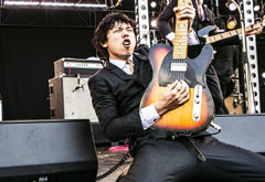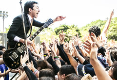 THE BAWDIES2014年以来、4年ぶりに稲佐山へ帰ってきたTHE BAWDIES。go!go!vanillasのジェットセイヤに髪をセットしてもらったという(G)JIMをはじめ、お揃いのスーツ姿でビシッと決めて出番を待つ4人。 午後1時45分。 SAM & DAVE "SOUL MAN"をSEに、颯爽とステージに登場。 まずは(Vo,B)ROYのシャウト、そして「遅れないようについてきてくださいね!」との一言。そして(Dr)MARCYの4カウントから【IT'S TOO LATE】でライブスタート! ジャンプしたりOi Oiコールしたり一緒に歌ったりと、1曲目からソウル汁(=汗)大放出の盛り上がり! この曲の最後に繰り出された、約30秒にも及ぶROYの超ロングシャウト!どんな言葉よりも雄弁なロックンロール宣誓! 「お祭りには打ち上げ花火が必要!昼間に見えなければ、あんたらが打ち上げ花火になったらいいんじゃないんですか?」と煽って突入した【YOU GOTTA DANCE】ではオーディエンスがみんな飛び跳ねて、まさに"人間打ち上げ花火"状態! (曲の途中でJames Brown "I Feel Good"のSaxを彷彿とさせるフレーズをベースで弾いていたROYが個人的にツボ!ソウル愛あふれる遊び心がニクい!) 水分補給などの小休止を一切挟まずにMCへ。 THE BAWDIESが結成15周年目、そしてメジャーデビュー10周年目という大きな年であること。初のベストアルバムを出して、47都道府県すべてをまわるツアーの真っ最中であること。その「THIS IS THE BEST」に1曲だけ新曲を入れていることなどを紹介したうえで「新曲やってもいいですか?新曲でも踊れますか?」と【FEELIN' FREE】を披露! 攻撃的なギターリフとボーカルに刺激されて、一番うしろのオーディエンスまで全員ダンス!ラジオで連日オンエアしていたので、新曲とはいえ予習バッチリだったオーディエンスも多いのでは? (思い返せば、前回のSky Jamboreeでも新曲をセットリストに加えていた彼ら。常に新しい一歩を踏み出し、転がり続けていることの証!) 攻めのロックンロール3連発を終えたところで、突然スピーカーから聞き覚えのある効果音が。ここから恒例の小芝居(メンバーいわく"ミュージカル")開幕。 ROY & JIMによる「土地の相続問題で揉める兄弟ゲンカ」を仲裁すべく、TAXMAN & MARCYが某国民的アニメのキャラクターのように「仲直り粗挽きソーセージ」や「やさしく包めるコッペパン」「ケチャップとマスタード」をポケットから取り出し(笑)お待ちかねの【HOTDOG】へ!ライブエリアの興奮度が土ぼこりの舞い方からもよく分かる! 続けて演奏された【JUST BE COOL】では、大サビ突入タイミングで「行くぞSky Jamboree!!」との掛け声で一斉に大ジャンプ!本日二度目の花火打ち上げに成功! MARCYがフロアタムでビートを刻み続けるなか「最後はFM長崎とSky Jamboree、THE BAWDIESが、この先も転がり続けていくというお約束で"KEEP ON ROCKIN'"という言葉で締めさせていただいてもよろしいですか?ともに転がり続けていきましょう!」と話して、ボルテージ最高潮の高速BPMによる【KEEP ON ROCKIN'】! ステージを降りてオーディエンスの目の前でギターをかき鳴らすTAXMAN。JIMにいたってはマイクスタンドまで持ち出して、ファンに足やマイクスタンドを支えられながら演奏! 曲の中盤ではWilson Pickett "ダンス天国"のメロディで、オーディエンスとコール&レスポンス。「振り切っていけますか?全開でいけますか?!」と呼びかけてチャレンジするも、メンバーを納得させるだけの声量が返ってこなかったようで、残念な顔つきでバッテンポーズして曲を中断(笑) 声を徐々に大きくしていこう!との提案から、小さく→中くらい→大きく、そして最後は「Sky Jamboreeにかけて、さっきの20倍!」 これが見事に成功!大歓声を受けながら演奏終了! 最後の最後はTAXMANによる「わっしょいタイム」で大団円、ピシャリ30分(笑) THE BAWDIESのロックンロールは、誰もが踊れる最高のダンスミュージック! 次は47都道府県ツアーの会場で、そして日本武道館で、思う存分踊りましょう! ロックンロールに幸あれ! SET LIST 1:IT'S TOO LATE 2:YOU GOTTA DANCE 3:FEELIN' FREE 4:HOTDOG 5:JUST BE COOL 6:KEEP ON ROCKIN' NEWS Thank you for our Rock and Roll Tour 2004-2019 (後半戦スケジュール) 11月20日(火) 佐賀 GEILS 11月22日(木) 宮崎 SR BOX 11月23日(金・祝) 鹿児島 CAPARVO HALL 11月25日(日) 福岡 DRUM LOGOS 2019年1月17日(木) 日本武道館 |