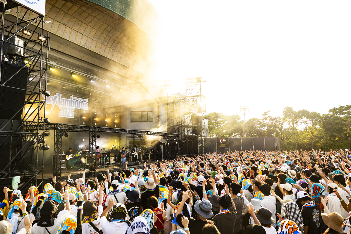 マカロニえんぴつは今年デビュー10周年、3年振り2度目のSky Jamboree。DJ YUYAがみんなで10thを祝おうよと"デビュー10周年おめでとう!"というオーディエンスからの嬉しいコールのサプライズも。