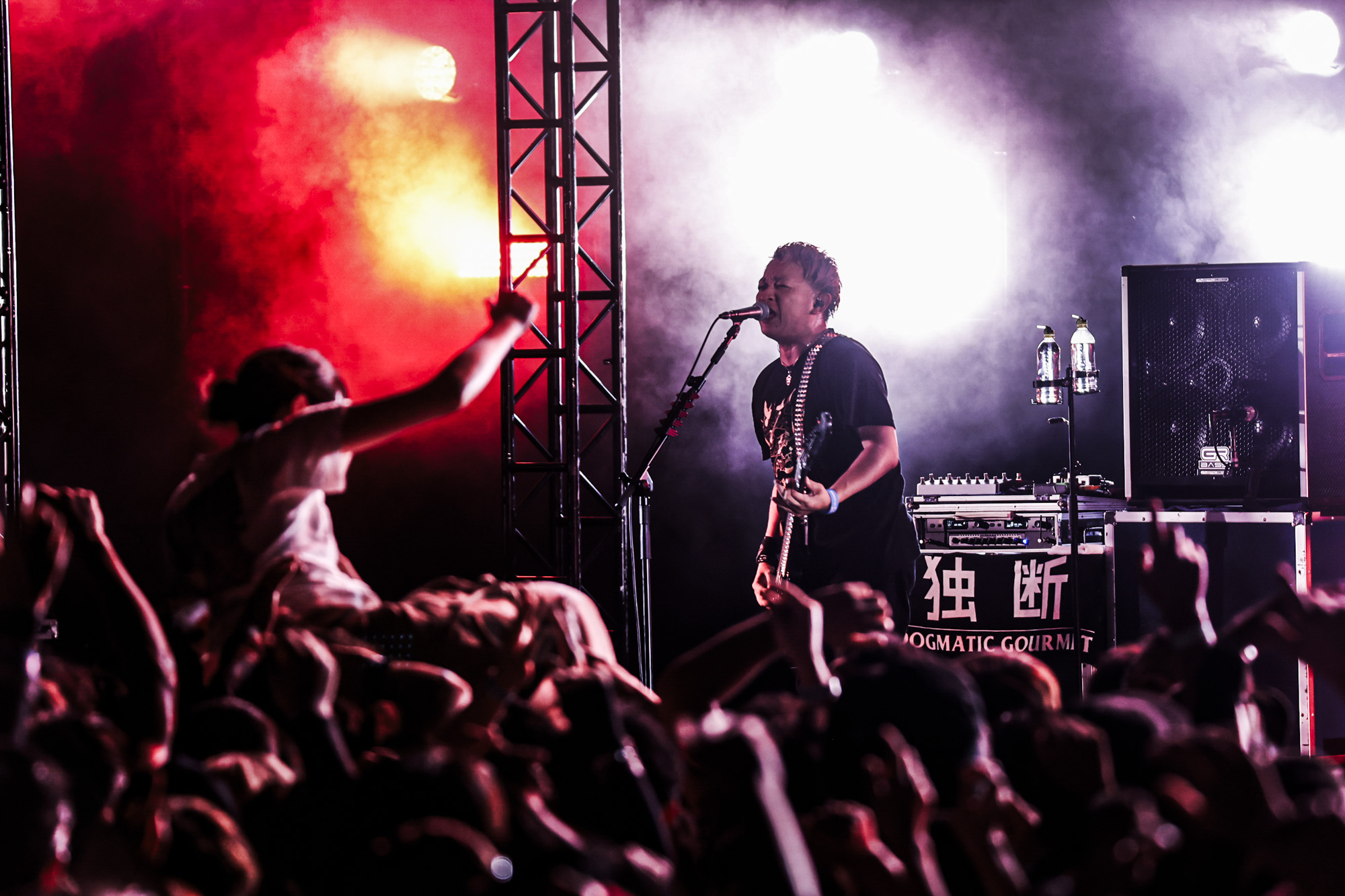 打って変わり、「今日は8:30まで時間をもらってるんでギリギリまで演るから。俺らのライブは予定調和じゃなくて、ほんまに自分が良いと思ってくれたらノッてくれたらいいし、あんま良くなかったら帰っていいし(笑)。ほないくで。」≪Vo. / Gt.≫TAKUMAが「12341234!」と雄叫びを上げギターをかき鳴らすと大歓声の中『RIVER』がスタート。オーディエンスも大きな渦描き、グッチャグチャに盛り上がり、さらにとどめの『ハローフィクサー』。本気で言葉を、音楽を味わっているメンバーとオーディエンスの純粋な姿がここには確かにあった。